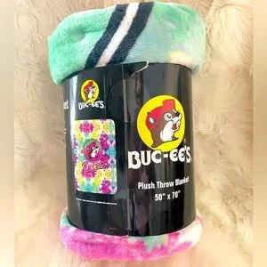 The infamous Buc-ee’s Multi colored plush throw blanket. Size 50x70