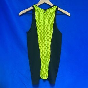Great Condition, Women’s Size Large, 78% polyester, 16% polyamide, and 6% Elastane, hexagonal neon pattern