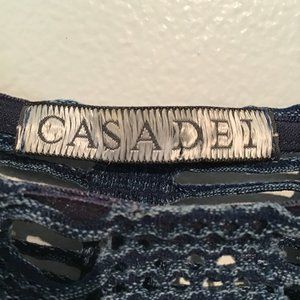 Unique crochet top with cutouts and fringe detailing along hemlines.