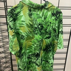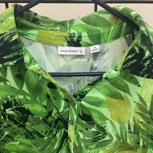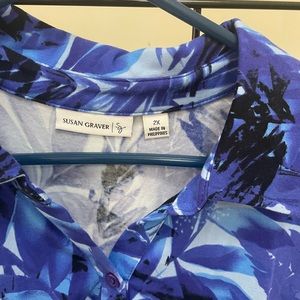 Susan Graver 2 Tops Island leaf print One blue One green size 2x. short sleeve with collar
