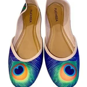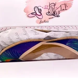 Fuchsia Artisan Made Peacock Print Flats Women’s Size 9