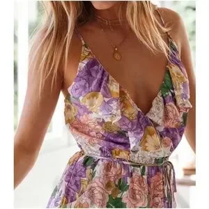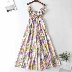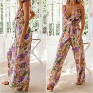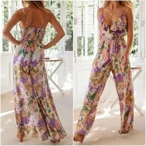 Boho Floral Print Ruffle Wide leg Cami Jumpsuit