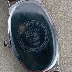 Vintage nice Western Styled Sterling Silver Ecclissi with Engraved Case and Black Enamel 1.25 by 0.6875 inches Wide Black Onyx Crown, Almost new Brown Leather 9 inch Ladies Wristwatch new battery serviced 23530 almost new no scuffs to mineral crystal