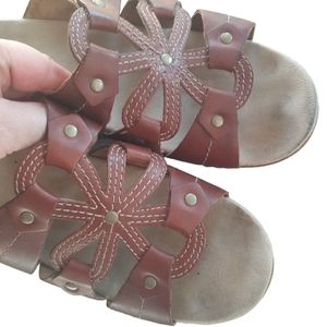 Dansko Serena Wedge Clog Sandal Leather brown Flower