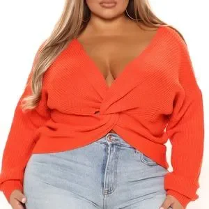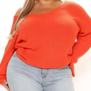 Bright orange sweater. Can be work with deep b neck in front or back. Soft, loose weave, lightweight, vibrant. New with tags.