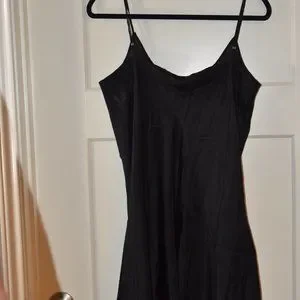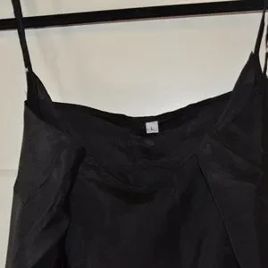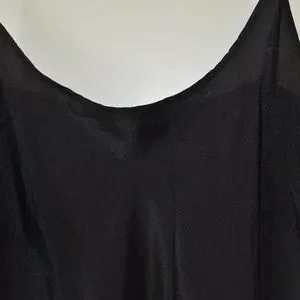 100% Silk, women's size L with adjustable straps. Measurements when laid flat are bust 18", length from under arm to bottom 30".