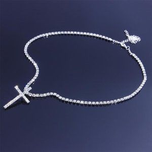 Big Cross Necklace Tennis Chain Crystal Rhinestone Choker Necklace Women Collar
