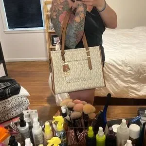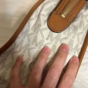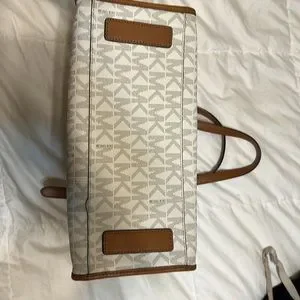 Barely used MK bag!!! Wore it & few times & then kept it in a storage bin. Small stains & imperfection on the bottom of the bag all shown in pics but can barely be recognized on the bag during use. Lots of storage in this bag! & all zippers in working order.