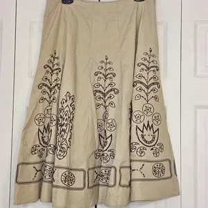Pretty tan and brown skirt with sequins. A lovely boho look. Great used condition.
