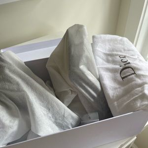 This pair is brand new with tag. It comes with original dust bags, box, a new replacement pair of top pieces for the bottom of the sole. This pair was purchased at Dior retail store and has never been worn. The minor black showing at the sole was from trying them on from the Dior store. Idea for graduation, wedding and all sorts of events.