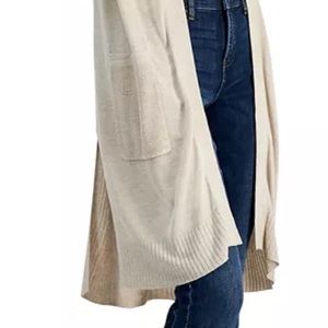❌ SOLD INC Ribbed Duster Cardigan, Longline Open Front, Pockets. Oatmeal, Size M