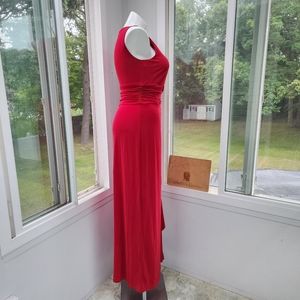 CHAPS Dark Red Stretch Jersey Faux Wrap Ruched Maxi Dress