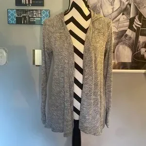 Lightweight. Heathered sweater material. No pockets or buttons. Hooded! Great condition .