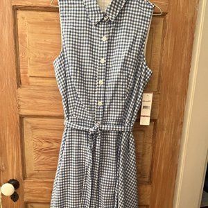 NWT Chetta B Size 12 Blue and White Checked Summer Dress w Tie Belt, Fit & Flare