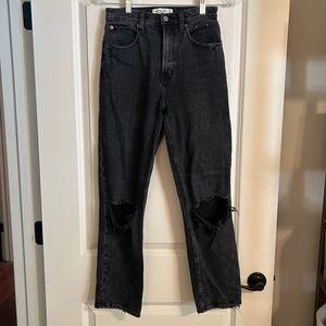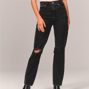 Abercrombie & Fitch Ultra High Rise Ankle Ankle Straight Jeans in Black Destroy