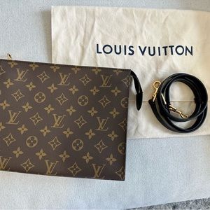 Louis Vuitton Poche Toillette NM, gently used once in like new condition. Size approximately 9.8 x 7.9 x 2.2 inches. I added the insert and black leather shoulder strap (from Tory Burch) to make it convertible as cross body bag. Super chic. Price is firm and bundle discount doesn’t apply. 100% authentic, Poshmark will also authenticate this purchase for you. Comes with original dustbag.