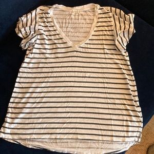 Anthropologie blue and white striped oversized v neck t shirt - vented sides - flutter sleeves