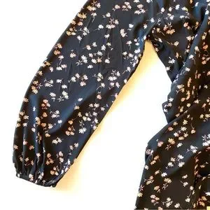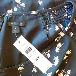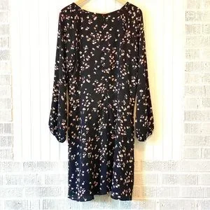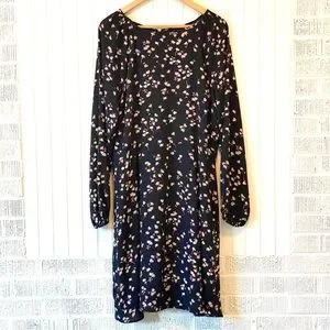 NWT Ann Taylor Black Floral Long Sleeve Boho Dress, Size 14T