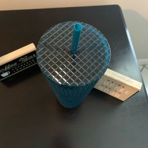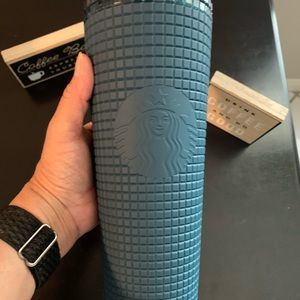 Starbucks winter 2023 navy blue/ teal, soft touch grid tumbler 24 ounce.