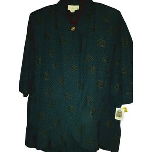 Lemon Grass XL Button Blouse Blúe-geen With Gold Buttons Shirt NWT
