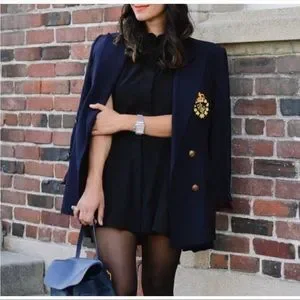 Vintage Ralph Lauren Navy Wool Blazer. Has shoulder pads and gold button details. One of the buttons has a scratch. Other than that in really good condition. Please refer to pictures
