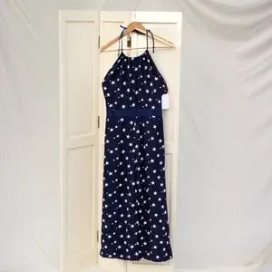 Star patterned Tie Neck jumpsuit, perfect for July 4th celebrations, Halter rope tie neck, zip closure, minimal stretch