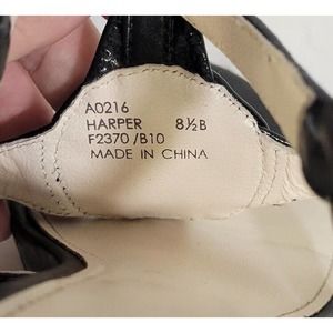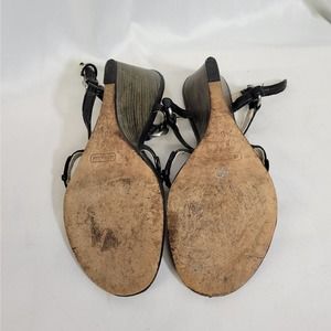 COACH Harper Black Leather Silver Stud Slingback Wedge Sandals Size 8.5