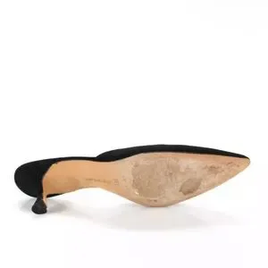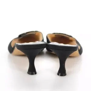 Manolo Blahnik Pointed Toe Jeweled Trim Mules Black Canvas EU 38.5 US 8