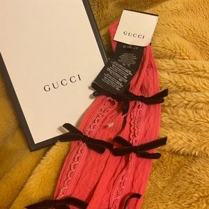 NWT Gucci pink Moulinoir Bow Socks over the knee lace socks. Velvet bow large