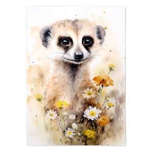 Watercolor Meerkat With Flowers Portrait Wall Art Illustration Print Unframed