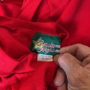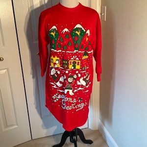 NWOT Starlit Night Christmas Nightgown with soft interior. It has never been worn. The label says one size. It measures 20 inches across from armpit to armpit. It is approximately 34 inches long from the neck to the bottom. It is 100% acrylic has long cuffed sleeves and a high neck. It should keep you very warm.