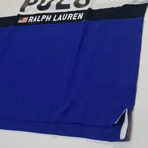 Men's blue, white and black short sleeve classic fit polo shirt.