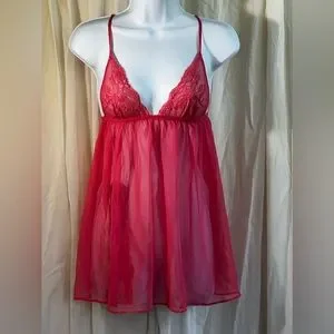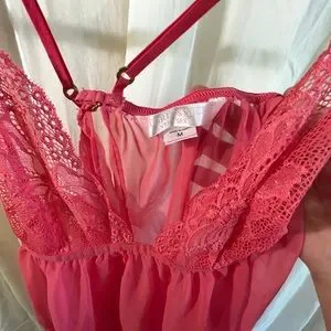 Victoria’s Secret hot pink chemise slip gown. Lace bust, adjustable straps. Side slit with cute bow detail