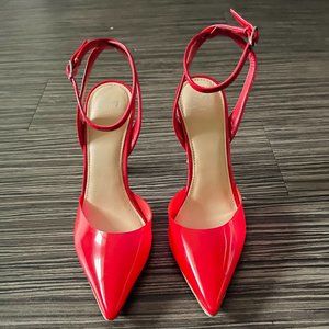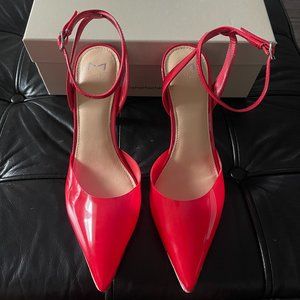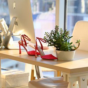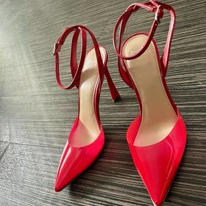 Lofted by a slim architectural heel, this sleek pointy-toe 4-inch pump has a translucent front foot design with a comfortable medium fit and a suede sole.