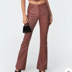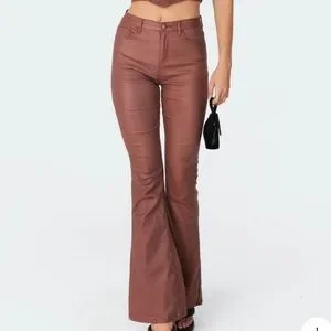 Edikted brown leather flare pants