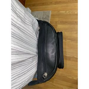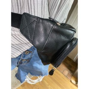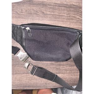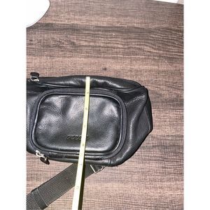 FOSSIL vintage black leather fanny pack waist bag RARE