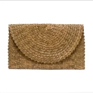 This lightweight and natural clutch handbag is handwoven from palm fiber, a material used in indonesia as far back as the 5th century bce. The clutch features a magnetic snap closure which makes it easy to open and close. Take it to weddings and cocktail parties, or as a casual summer and beach handbag.