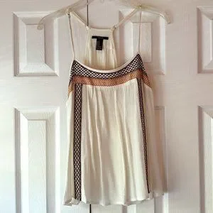 Pre-owned. Very good condition. Flowy, embroidered racerback style tank top, pattern is burgundy and orange. Adjustable straps. Care tag removed.