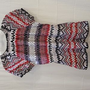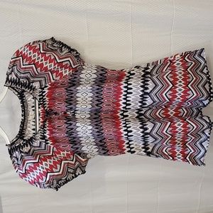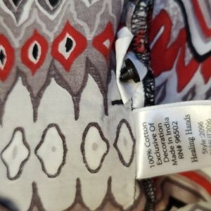 100% cotton scrub top with hidden side pockets. Measures 21" across the chest and 27" long.
