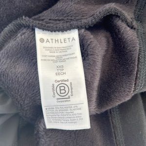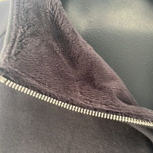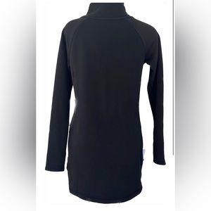 Athleta mini dress with long sleeves that have thumb holes. Sturdy metal zipper at the neck can be worn up or down. Soft velvety fleece inside of sweatshirt like material. Two hidden side pockets with zippers.