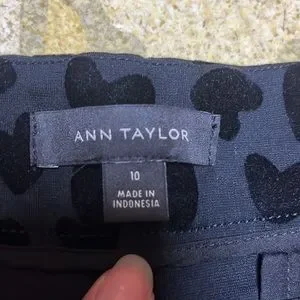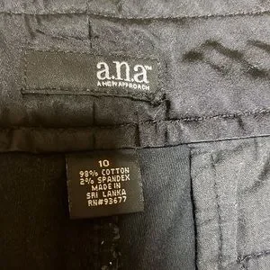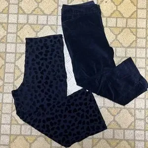 These are both in excellent condition! Both size 10 and both black velour. The Ann Taylor have a heart pattern. The measurements are 16 inch waist waist to Crotch is 11 inches with a 24 inch inseam. These also have about an 8 inch side zipper. They have no pockets. The A.N.A are plain black with four buttons at the bottom for a cute added detail. The measurements are 16 inch waist 10 inches from Waist to Crotch and 22 inch inseam. These have two front pockets and two back pockets. As always smoke and pet free home. Same day shipping! Willing to negotiate prices.