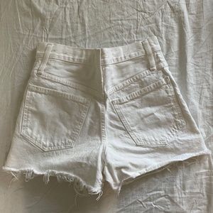 Size 24 white perfect jean short from Madewell. In great condition. High-rise and can style as cuffed shorts. Front rise: 11 1/2"; inseam: 3 1/2".