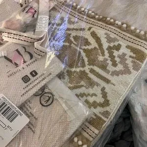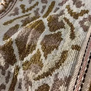 • The tote features a zip-top closure, two shoulder straps, and an adjustable/removable crossbody strap. It has hand-crafted bead embellishment on the front panel and jacquard details. The tote also comes with a removable tassel. The interior is lined and includes a back-wall zip pocket and two front-wall slip pockets.