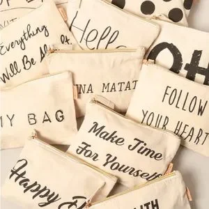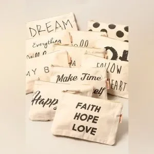 Bundle of 5 different sayings zippered bags. Could be used for cosmetics, pens & penciks, gift bags etc.