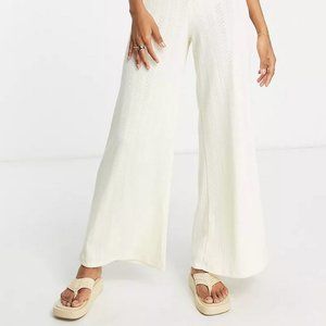 ASOS 70's zip front collared jumpsuit in pointelle Size Small US 4 Flare Beige