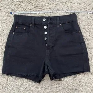 these shorts are so adorable, but they didn’t fit me right :( they have never been worn other than to try on. fits size 25w and i found them to run very petite. vintage styled, black jean shorts are a must! measurements are provided in the photos!