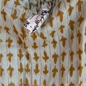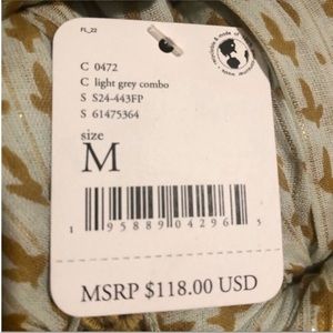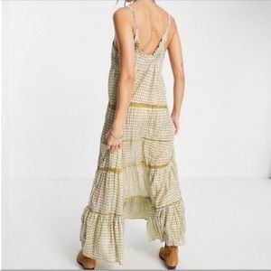 Free People Midnight Dance Print Maxi Dress in Grey Combo. NWT! Go boho in this lightweight, sleeveless slip dress featuring inset crochet embroidery details and a tiered silhouette. Light greenish gray with gold metallic threads. Scoop neckline with double back spaghetti straps. Tiered paneled. Slips over head. Semi sheer woven construction. Oversized, loose fit. Pit to pit 19.5”, length 54”. 90% cotton, 10% lurex. NWT retail $120. Still in original packaging. Sz M