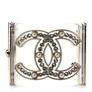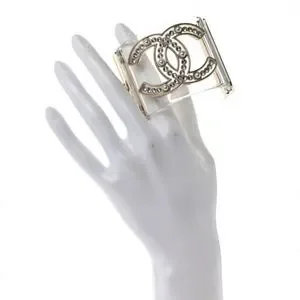 💯Authentic Like New. Transparent Crystal CC Cuff in golden and pearly white. Bracelet is translucent with a large CC in pale gold with large and small pearls. Comes with box. uses once