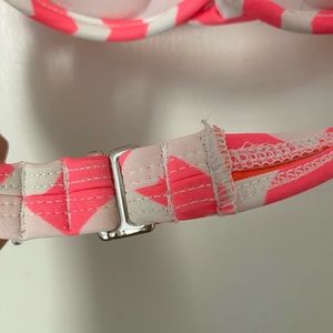 Top size Medium. Ties around neck/hook back closure