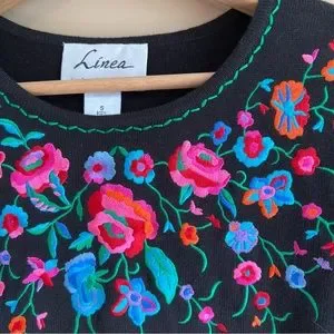 Linea by Louis Dell'Olio floral Embroidered Black Top size small